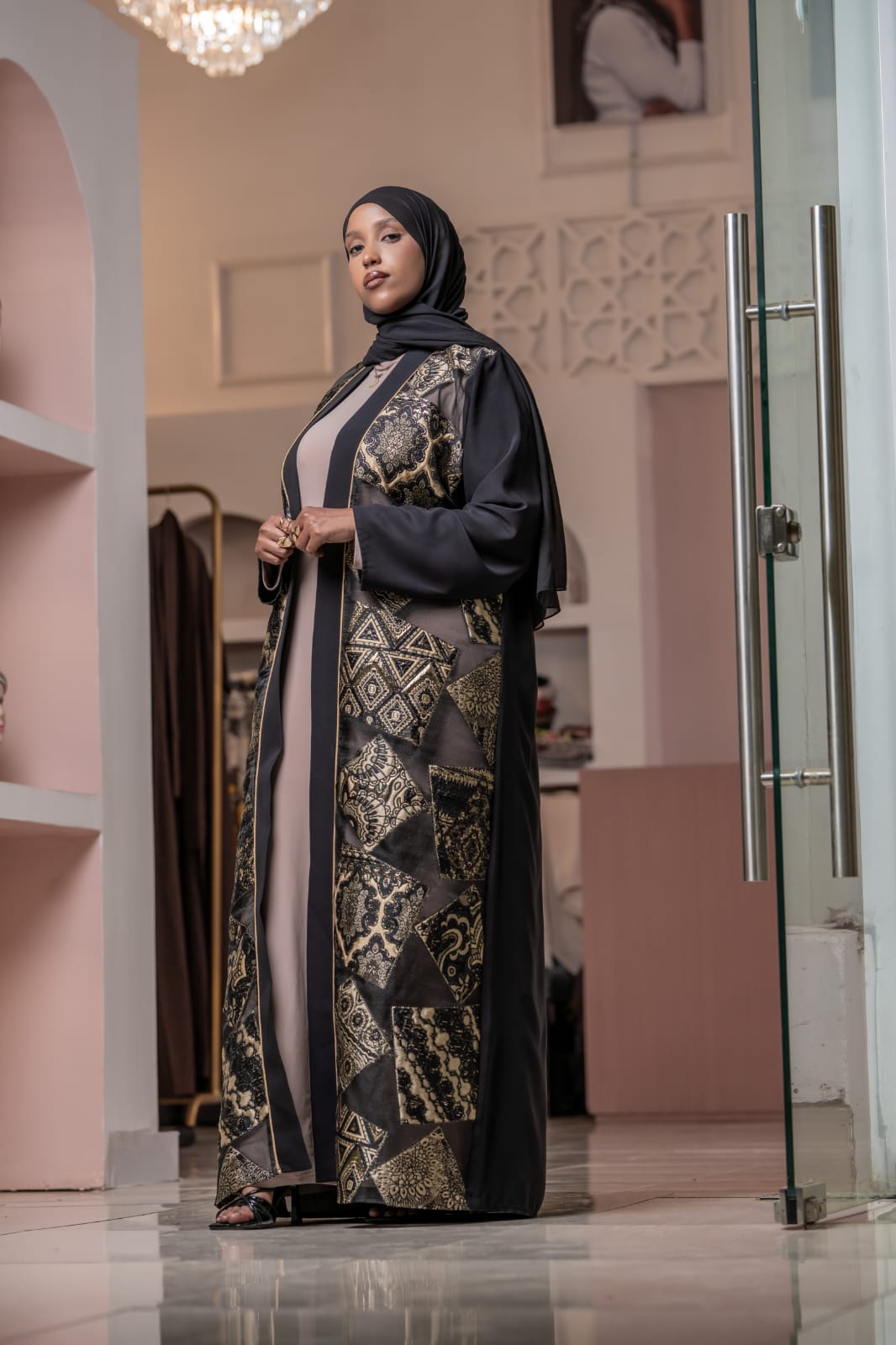 The Lulu Abaya is a timeless black abaya crafted from a soft blend of chiffon...