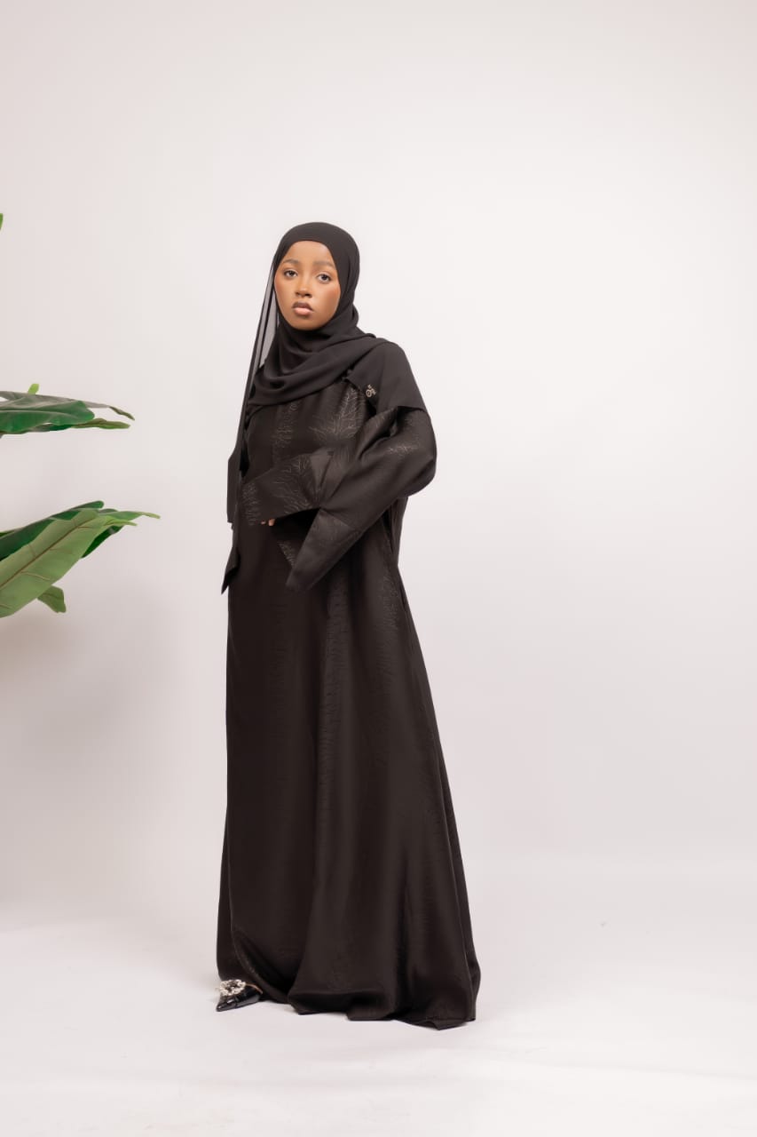 The Sana Abaya is a classic black chiffon abaya featuring a soft floral pattern for...