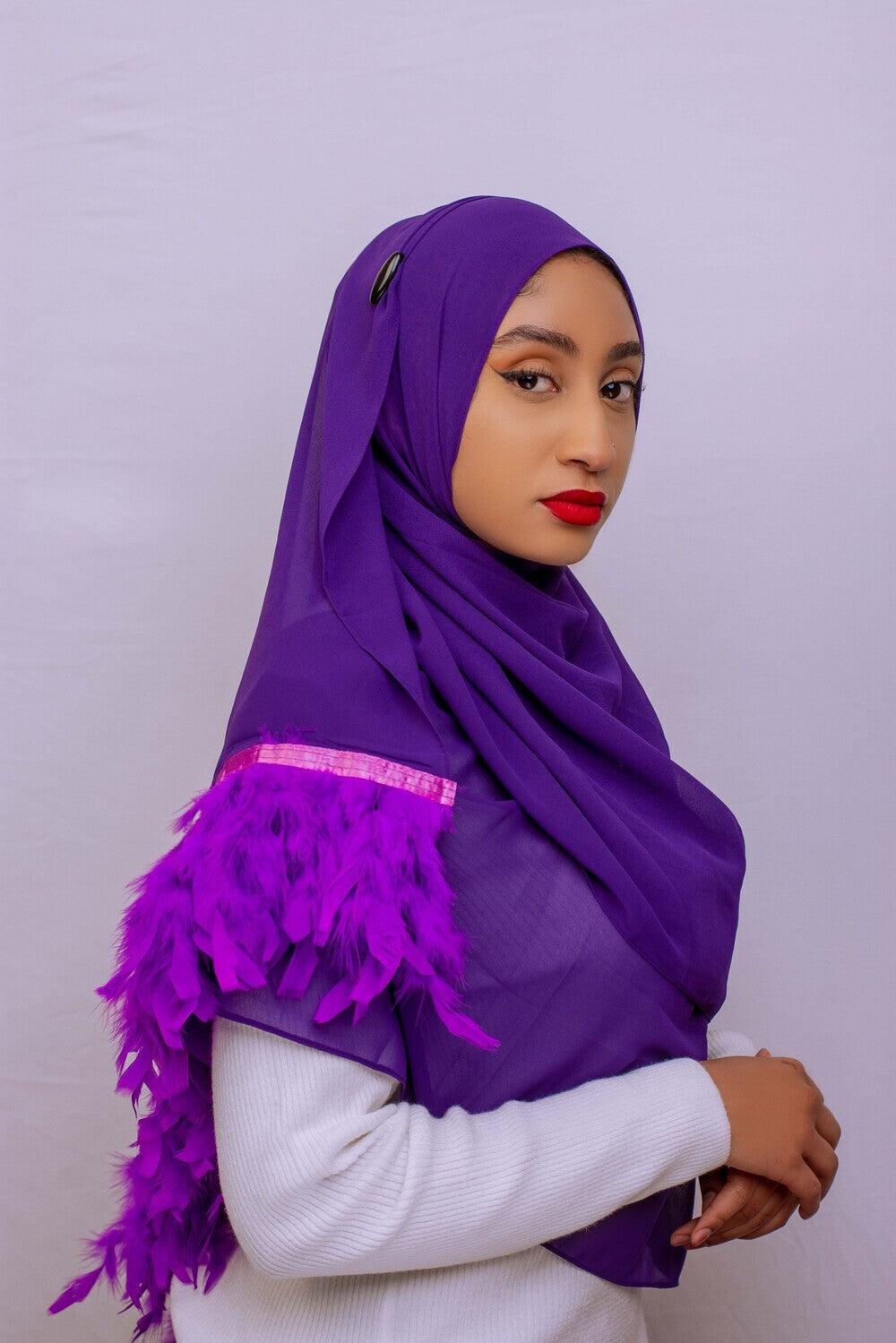 Enhance your daily modest fashion with Nizar's Line's Purple Feather Chiffon Hijab, a graceful...