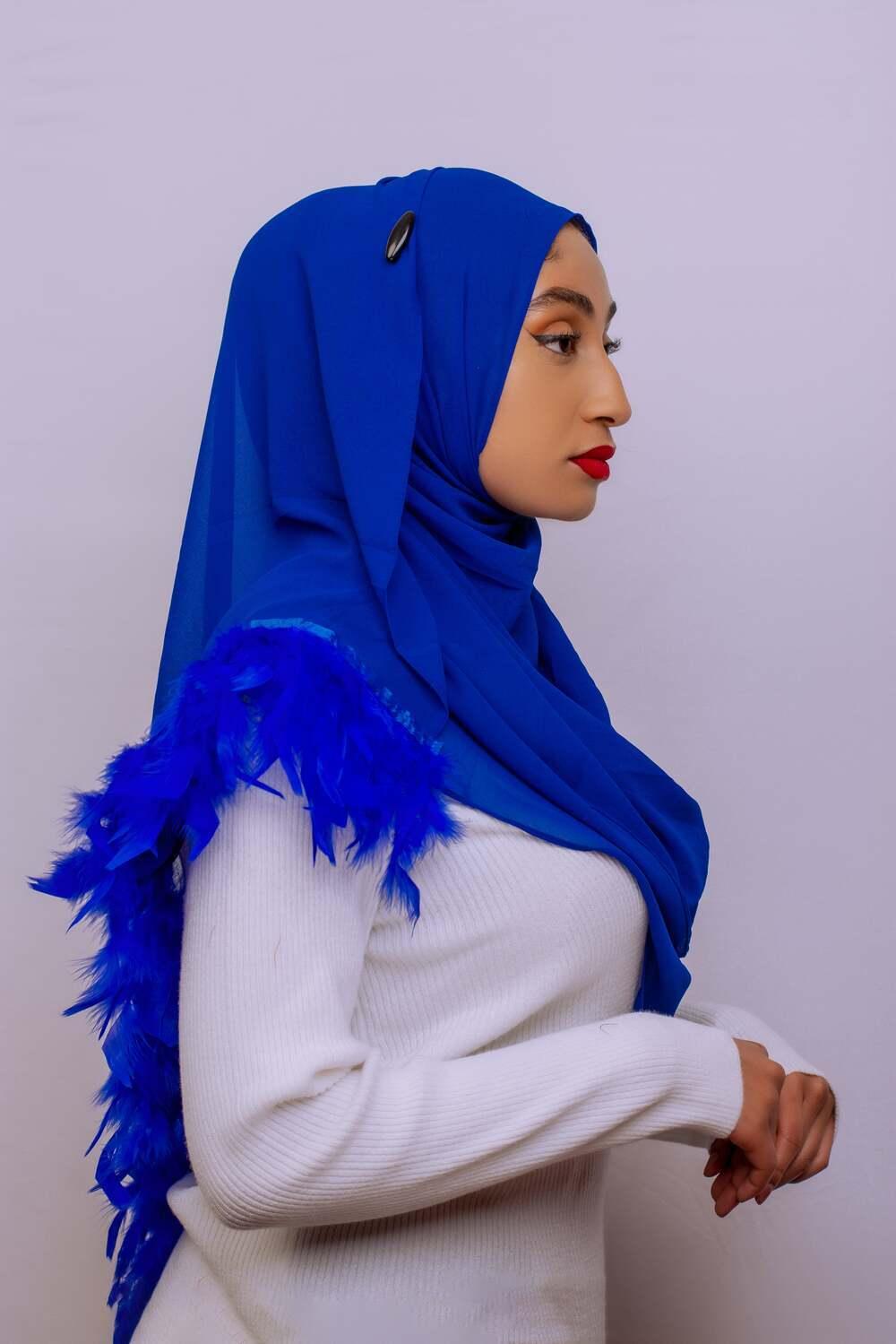 Enhance your daily modest fashion with Nizar's Line's Blue Feather Chiffon Hijab, a graceful...