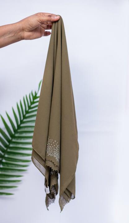 Introducing Nizar's Line's Brown Worm-Stone Chiffon Hijab, the perfect choice to elevate your hijab fashion....