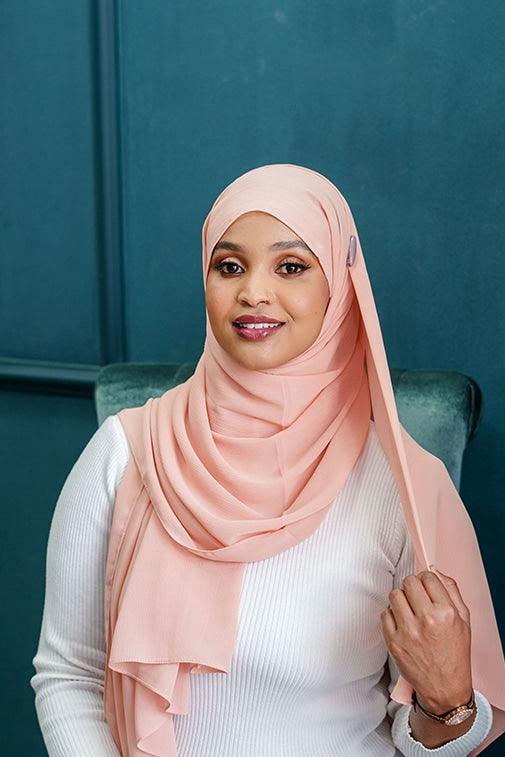 Elevate your modest fashion with our Fine Crepe Chiffon Peach Hijab, now available in Kenya...