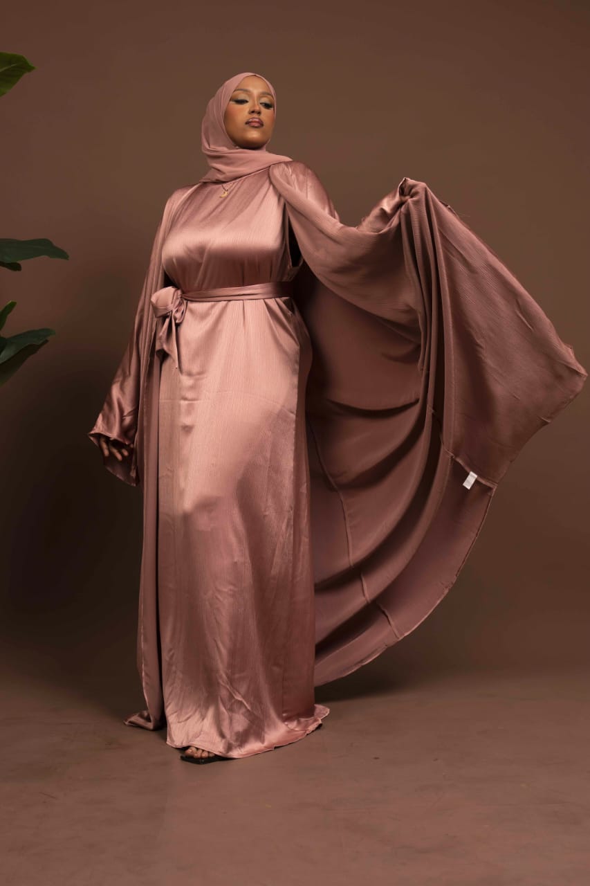 The Rawat Silk Abaya in Pink is crafted from high-quality silk, offering a smooth, lightweight...