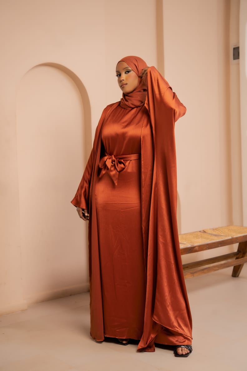 The Rawat Silk Abaya in Burnt Orange is made from high-quality silk, offering a luxurious,...