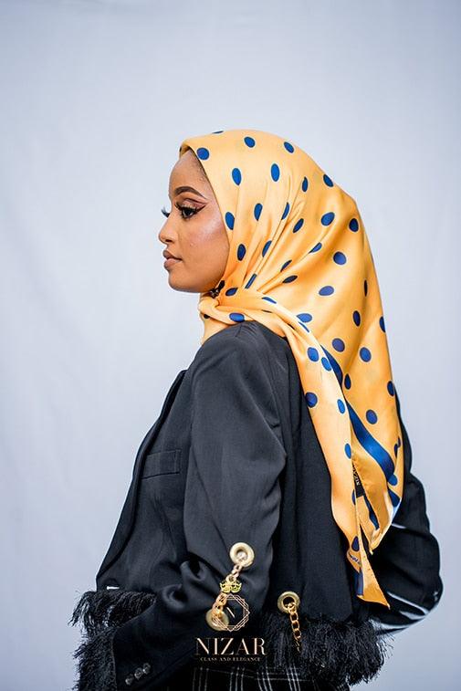Elevate your style with our Polka Silk Mustard Hijab, a standout piece from Nizar's Line's...