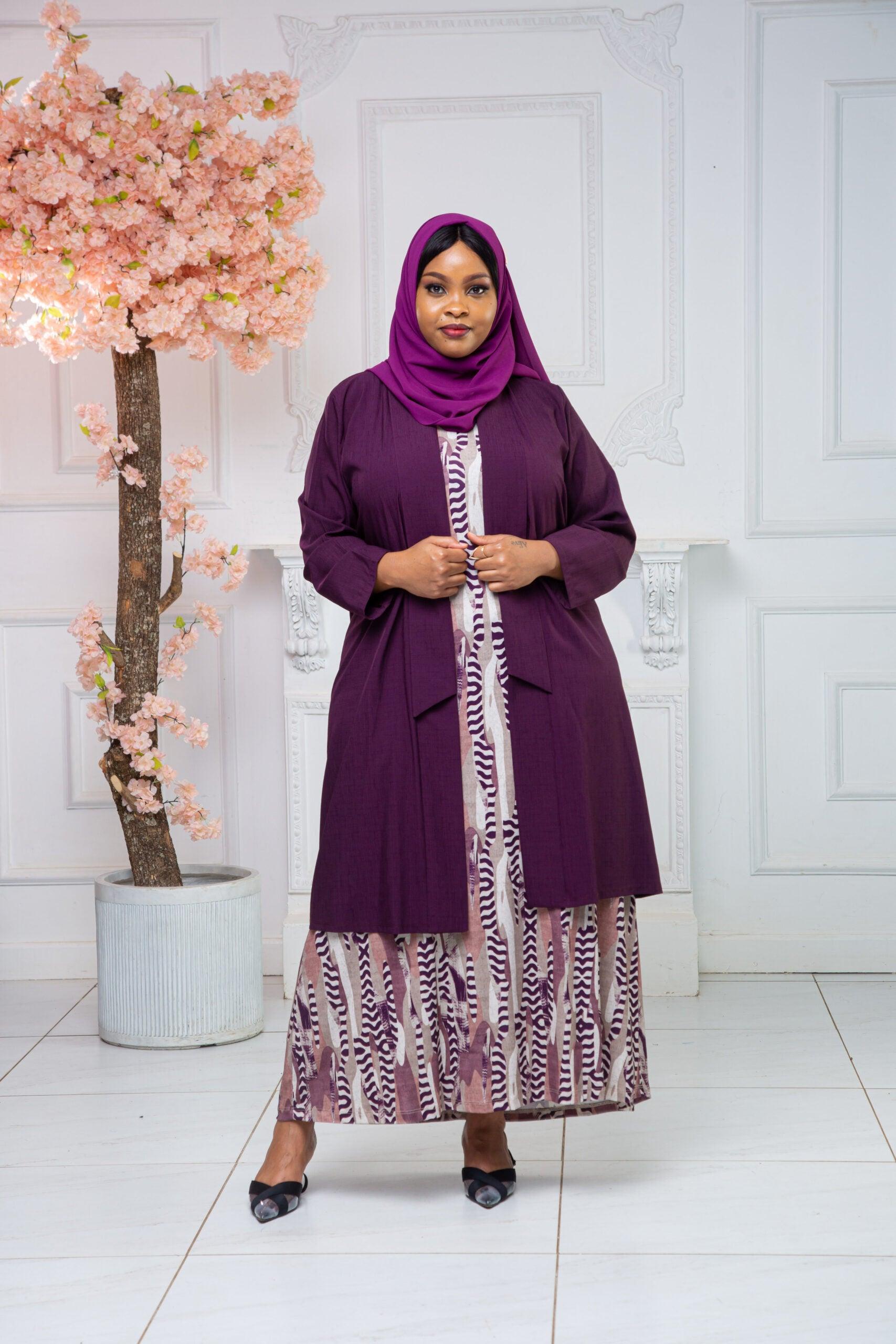 Introducing our 2 Piece Zei Purple Modest Dress from Nizar's Line's exclusive 2 Piece Set Modest Dress Collection. This high-quality dress is available in plus sizes and features an inner cotton dress and a polyester outer layer. With its chic purple and cream color scheme and formal appeal, it's perfect for various occasions. Elevate your style with this versatile and elegant modest dress, available for sale in Kenya at Nizar's Line.