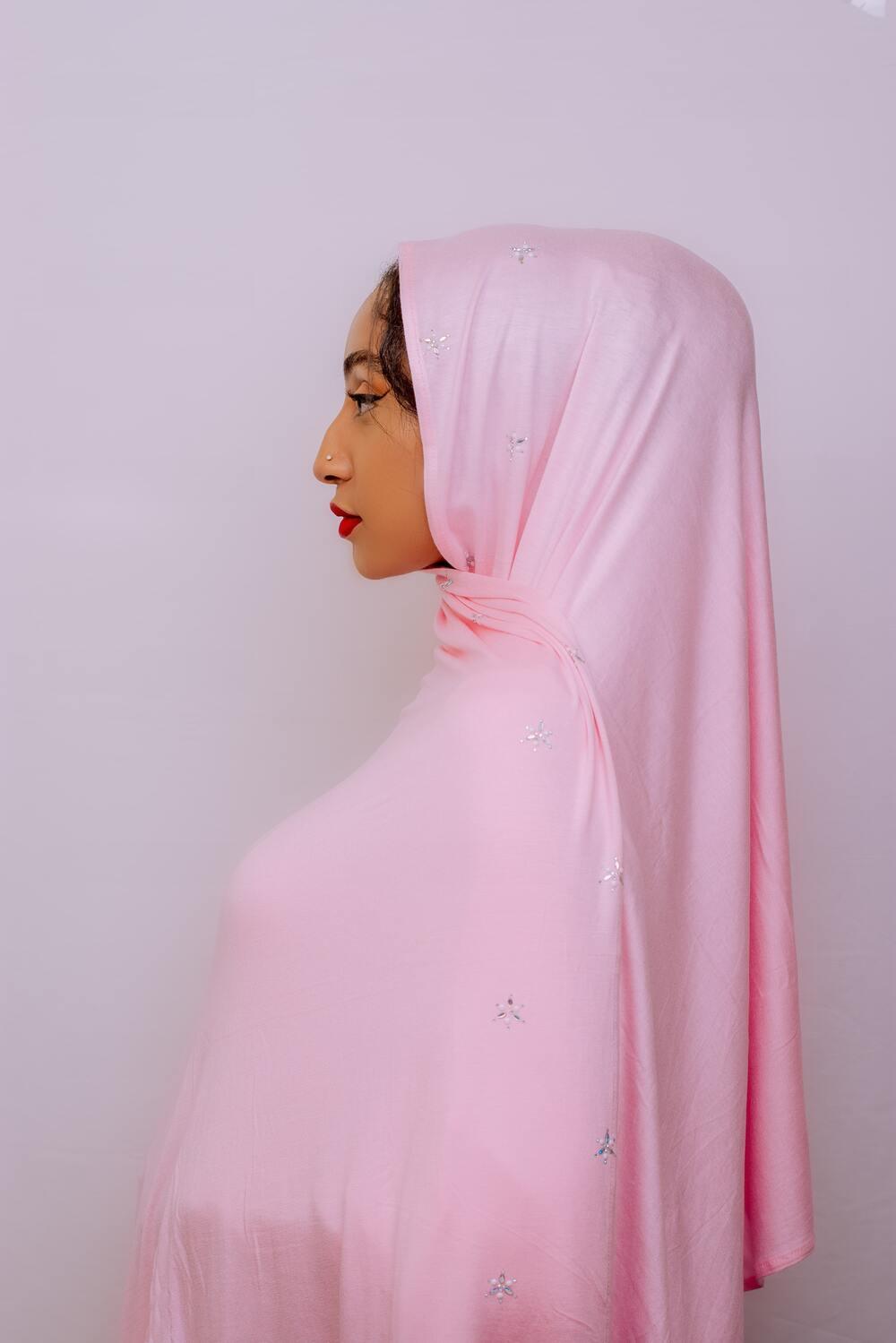 Elevate your modest fashion with the Baby Pink Star Stone Jersey Hijab from Nizar's Line. Crafted from premium medium-weight cotton jersey fabric, it offers softness and durability. The hijab's standout feature is the array of shiny stones that add glamour to your look while staying securely in place. It provides excellent coverage, maintains its vibrant color, and is versatile for various styles, making it a must-have in your collection. Discover this statement of elegance and charm at Nizar's Line, your trusted source for quality hijabs in Kenya. Upgrade your style effortlessly with the Baby Pink Star Stone Jersey Hijab.