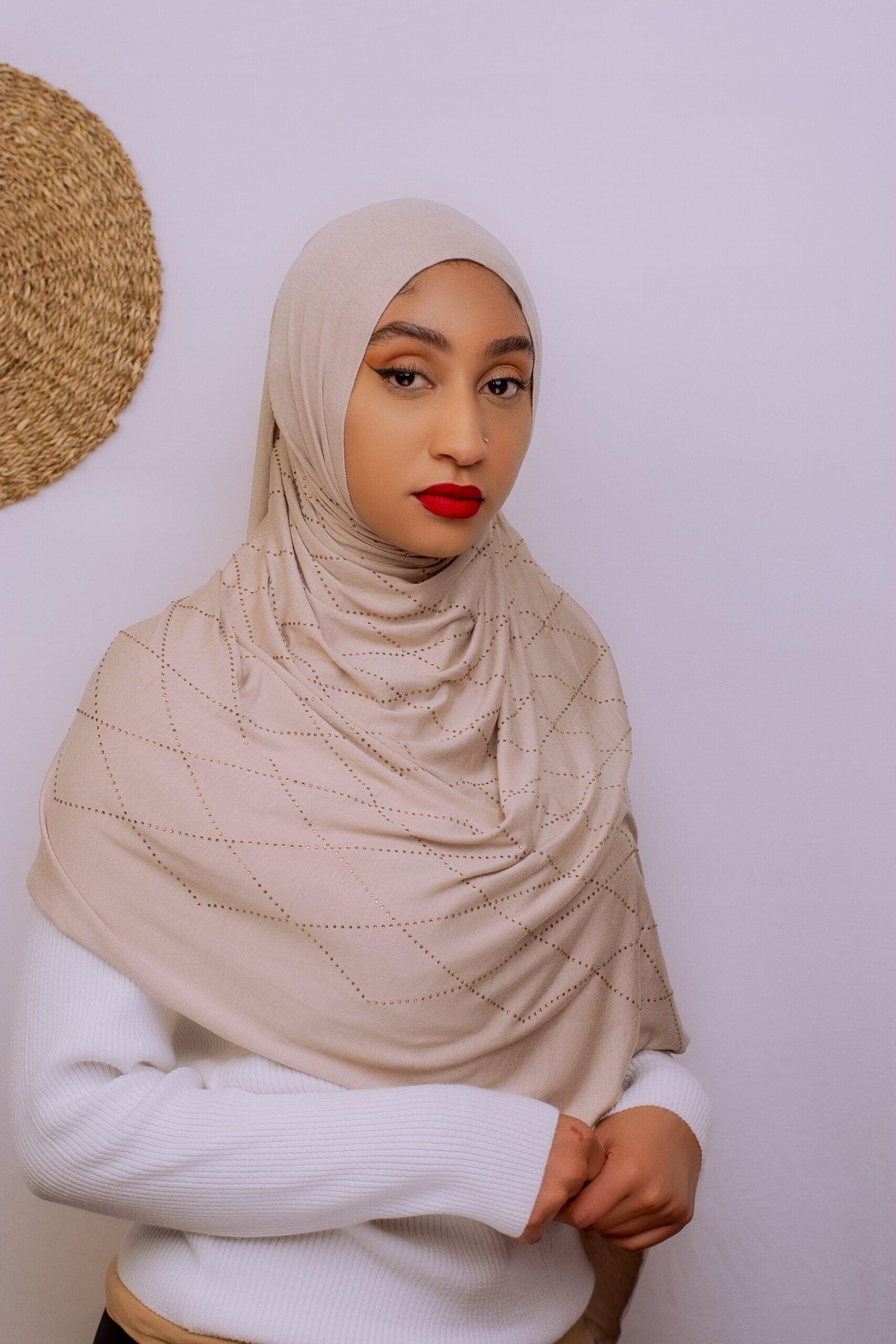Introducing the Beige Cube Stone Jersey Hijab, a coveted addition to our collection, now available for discerning hijab enthusiasts in Kenya at Nizar's Line. Crafted from high-quality medium-weight cotton jersey fabric, it offers unmatched softness and comfort. Delicate shiny stones thoughtfully placed along its length add a touch of glamour and sophistication. With full coverage and an opaque nature, this hijab ensures confidence in modesty. Plus, its elegant beige hue remains vibrant over time, thanks to our special dyeing process. Elevate your hijab collection with the Beige Cube Stone Jersey Hijab from Nizar's Line. Order yours today, in-store or online, and experience our commitment to quality and style.