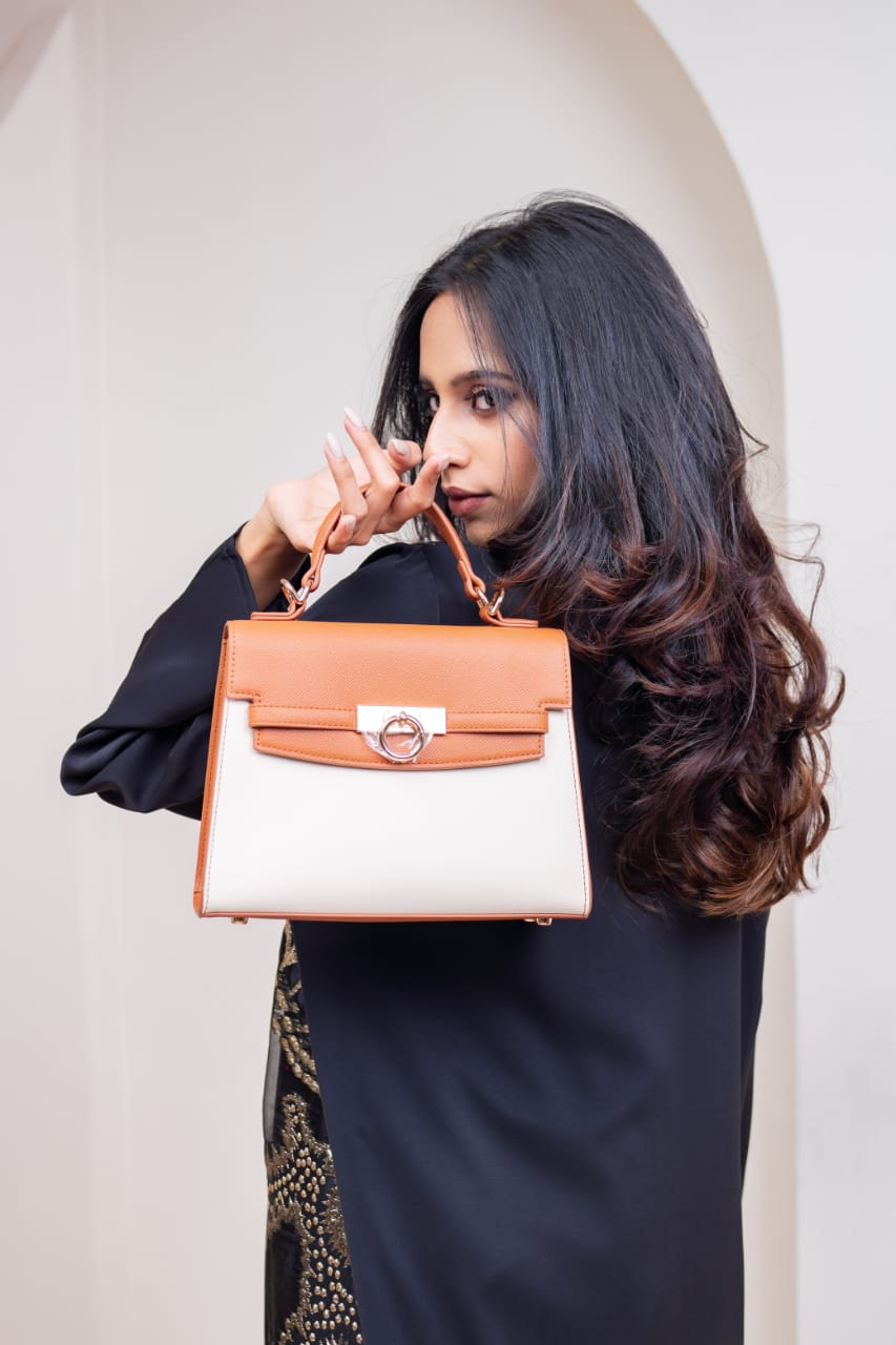 A stylish and spacious brown leather handbag with a touch of cream for added elegance. Made from high-quality leather, it's perfect for everyday wear — whether casual or formal. Durable, versatile, and timeless.
