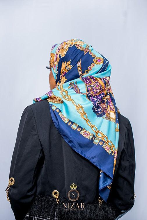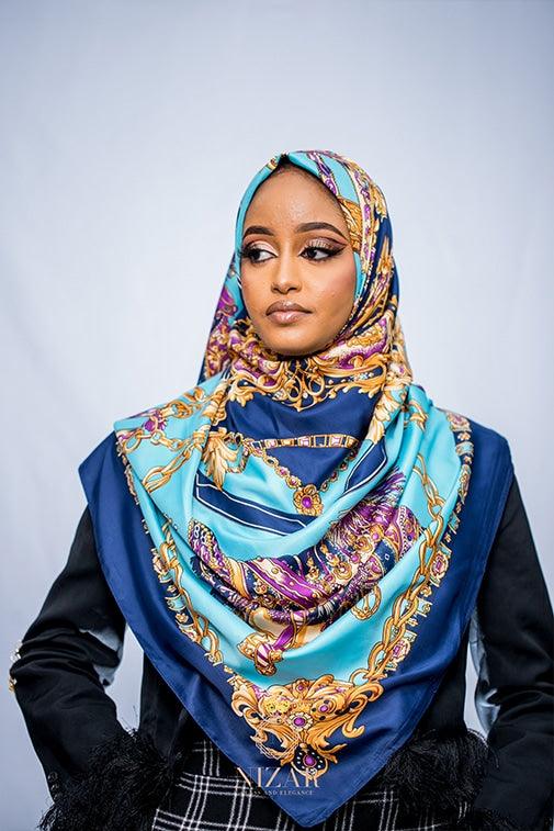 Elevate your fashion with the Blue Twill Silk Square Print Hijab from Nizar's Line's Twilli Hijabs Collection. This limited edition maxi size silk square scarf boasts an elegant floral print intricately crafted in a twill pattern, adding sophistication to your attire. Made from 100% Twill Silk, including Mulberry Silk, it offers a luxurious texture, lightweight feel, and excellent durability, ensuring a graceful drape. With generous dimensions of 130cm by 130cm, this square hijab allows for versatile styling options – from traditional hijab styles to creative uses as a neck or headwrap, wrist accessory, or even a chic handbag accessory or belt. Its captivating blue color complements various outfits and occasions, making it a versatile statement piece. For high-quality hijabs for sale in Kenya, Nizar's Line is your trusted source. Don't miss out on this limited edition hijab – order yours today to infuse sophistication and style into your wardrobe.