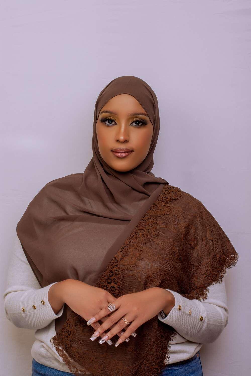Elevate your daily modest fashion with Nizar's Line's Choco Brown Chiffon with Lace Hijab, a graceful addition to their distinguished hijab collection. Meticulously crafted from the finest chiffon fabric, this hijab offers unbeatable comfort, a lightweight texture, and a timeless charm. Its rich choco brown color adds warmth and versatility, suitable for various occasions. The delicate lace detail on this chiffon hijab infuses an extra layer of elegance, allowing you to effortlessly elevate your modest style. For a secure hijab style that lasts all day, pair it with Nizar's Line's exclusive hijab safety pins and your preferred inner cap. Whether you're completing your everyday look or adding sophistication to a special occasion outfit, Nizar's Line offers a diverse selection of hijabs for sale in Kenya, ensuring there's a perfect option to cater to different fashion preferences. Redefine your daily style with grace and elegance by choosing the Choco Brown Chiffon with Lace Hijab from Nizar's Line.