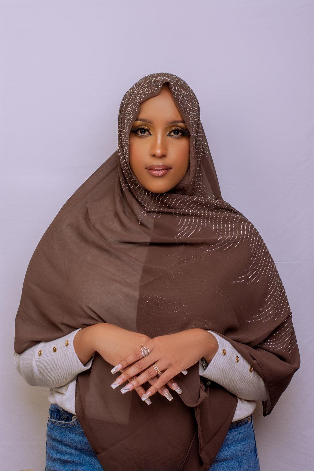 Elevate your hijab style with Nizar's Line's Choco-Brown Rain-Stone Chiffon Hijab. This hijab features chiffon fabric with a touch of shiny rain stones, providing a unique and luxurious texture. Its softness ensures comfortable wear, making it suitable for various occasions and weather conditions. The rich Choco-brown color adds sophistication and versatility to your ensemble. For those in Kenya seeking hijabs for sale, explore Nizar's Line for quality and style that combine tradition with modern elegance. Discover the ideal hijab to enhance your wardrobe at Nizar's Line.