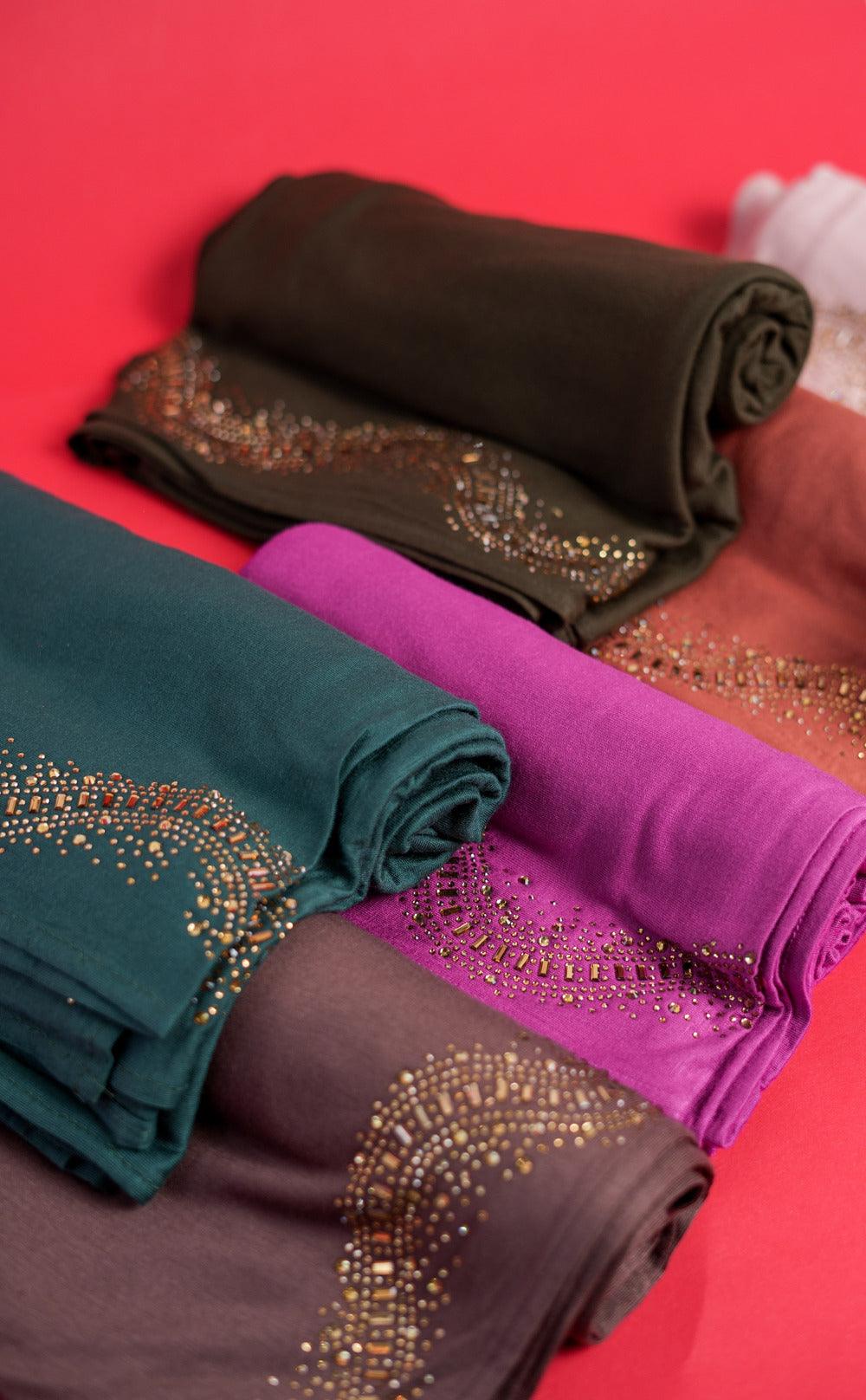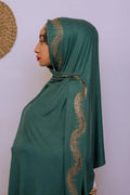Elevate your modest fashion with our Forest Green Snake Stone Jersey Hijab, part of our exclusive Stone Jersey Hijab Collection, now available in Kenya at Nizar's Line. This premium hijab is crafted from soft, breathable cotton jersey fabric, adorned with subtle yet stunning shiny stones along the edges. Its excellent opacity ensures full coverage, and our special dyeing process guarantees no color fading. Versatile and elegant, it's perfect for any occasion. Shop now to elevate your hijab game with Nizar's Line, where style meets modesty.