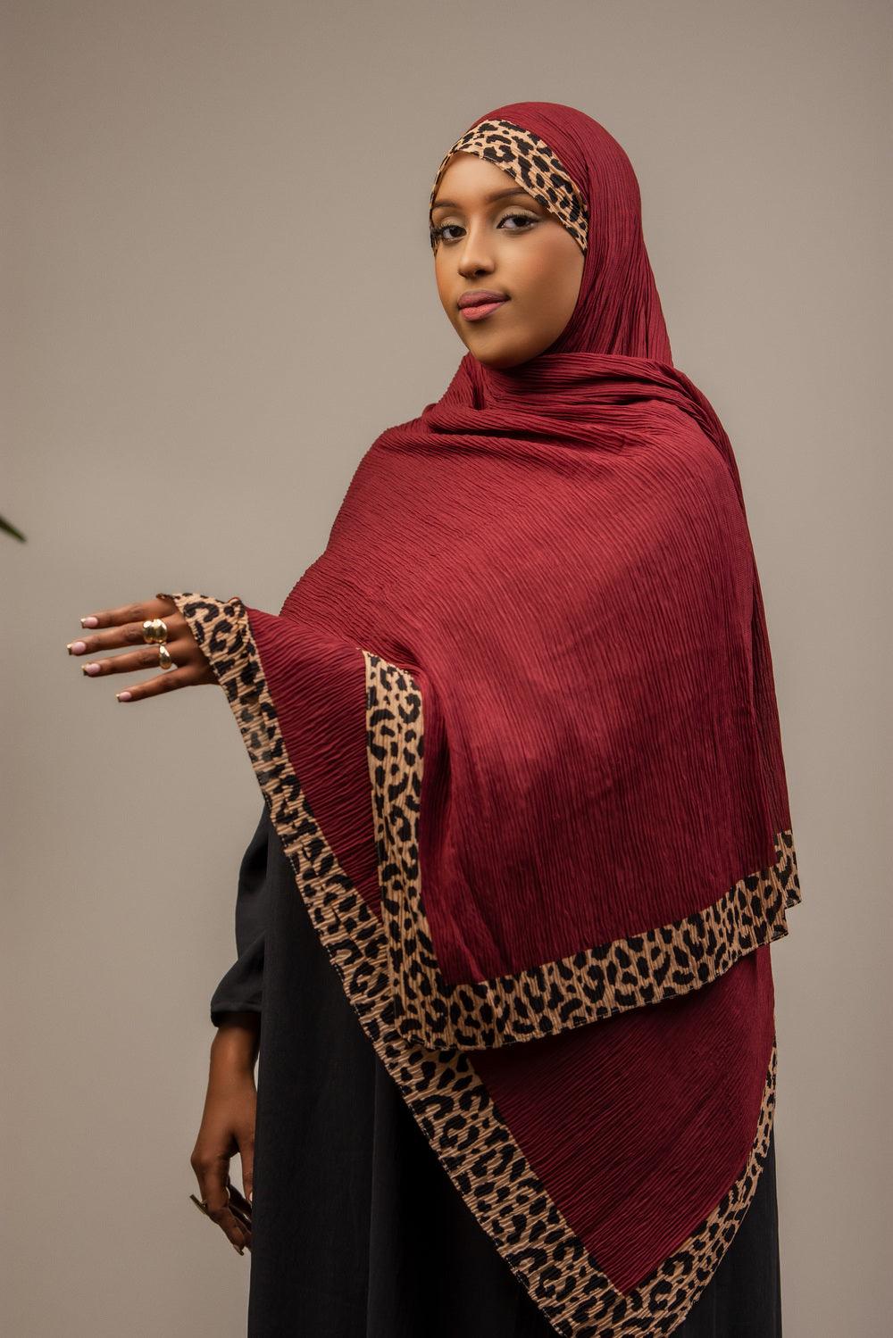 The Leopard Luxe Scarf Maroon from Nizar’s Line is a light, soft cotton scarf featuring a bold maroon leopard print. Its breathable fabric and chic design make it perfect for both casual and formal occasions. Shop for hijabs for sale in Kenya at Nizar’s Line.