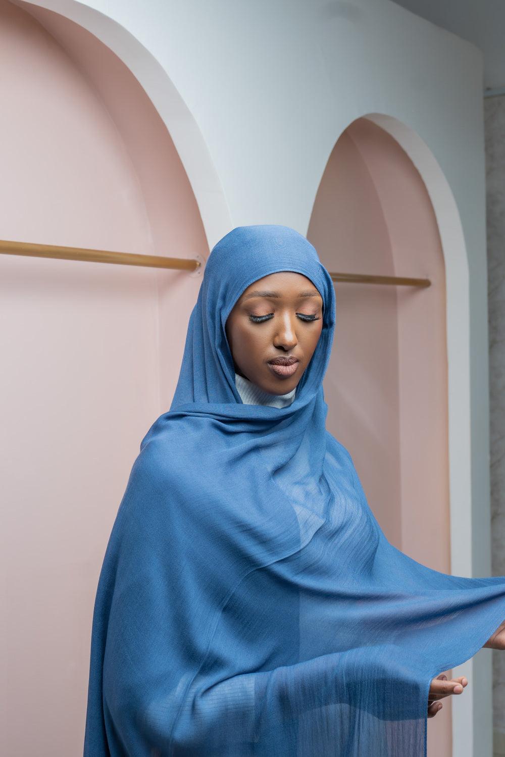 The Modal Scarf Blue from Nizar’s Line is a light, soft cotton scarf in a beautiful blue color, offering comfort and breathability. Ideal for daily wear or as a chic hijab, this versatile scarf is part of our collection of hijabs for sale in Kenya.