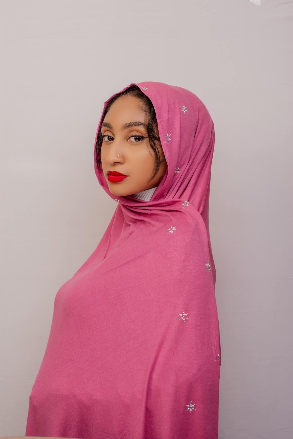 Elevate your modest fashion with our Lavender Pink Stone Star Hijab from the Star Stone Jersey Hijab Collection, now available for purchase at Nizar's Line in Kenya. Crafted from high-quality medium-weight cotton jersey fabric, it offers exceptional softness, breathability, and graceful drape. Adorned with shiny stones, it adds sophistication to your look. With guaranteed opacity and color retention, it's perfect for various occasions. Elevate your hijab game with Nizar's Line, where style meets modesty. Shop in-store or online for quality and style that define us. Order your Lavender Pink Stone Star Hijab today and enhance your modest fashion ensemble.