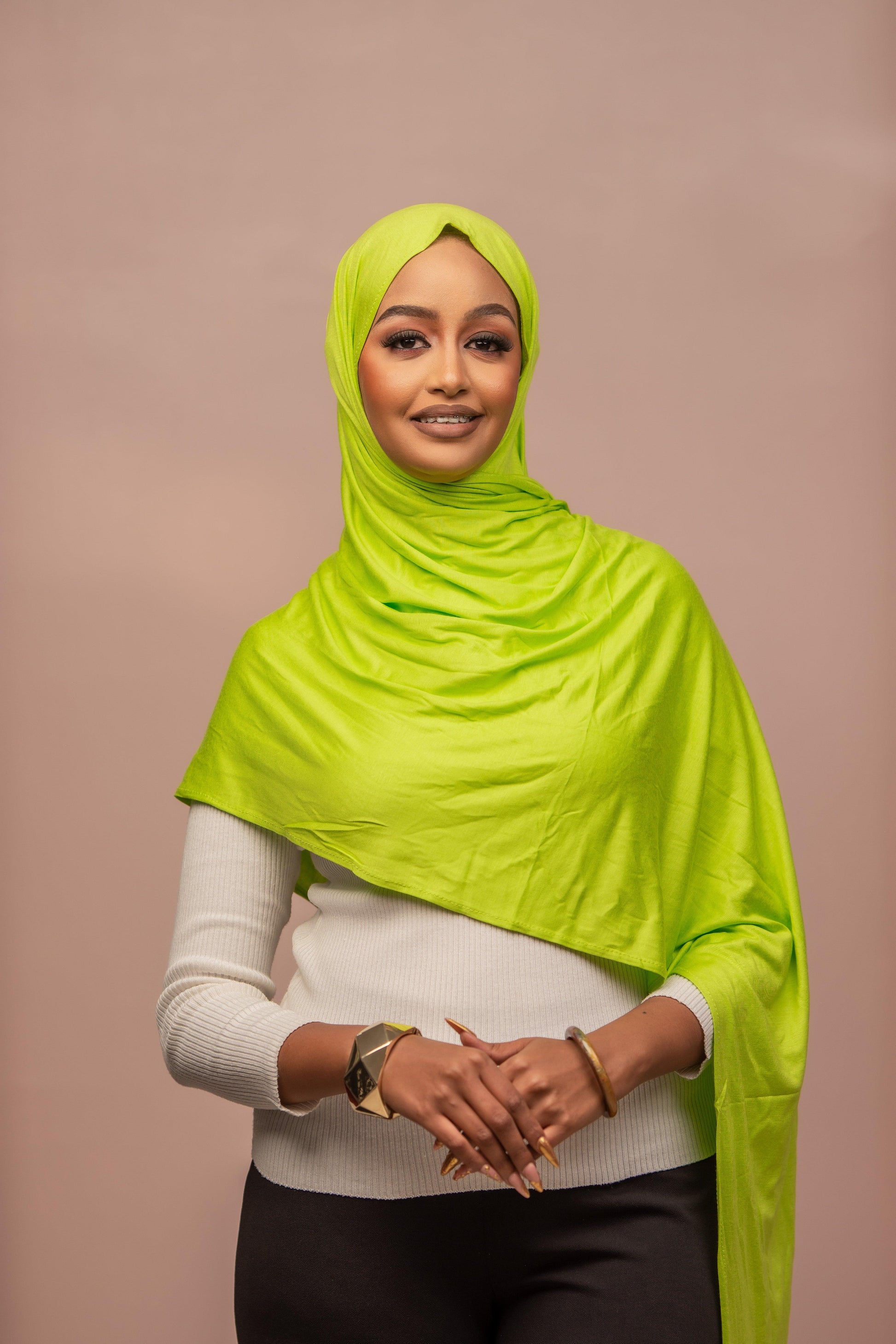 Elevate your hijab collection with the Luminous green Plain Jersey Hijab from Nizar's Line. This high-quality medium-weight cotton jersey hijab, known for its comfort and durability, boasts an opaque nature and a guaranteed no color fade, ensuring long-lasting elegance. Its impeccable drape and versatility make it suitable for various styles, including iconic looks, professional office attire, everyday wear, and creative turban ties. The captivating luminous green color adds a touch of sophistication to any outfit. If you're in Kenya and searching for top-notch hijabs, Nizar's Line is your destination. Don't miss out on this exquisite piece – order yours today to enhance your hijab collection with comfort and style.