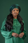 The Round Rich Wife Turban in Forest Green from Nizar’s Line features a shiny finish and bold round shape, offering timeless elegance. Made from high-quality fabric, this pre-stitched turban ensures effortless style and comfort. Shop turbans for sale in Kenya at Nizar’s Line today