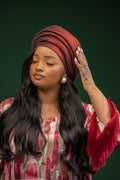 The Round Rich Wife Turban in Maroon from Nizar’s Line features a shiny finish, unique round shape, and rich maroon color, offering a bold and elegant look. Made from high-quality fabric, this pre-stitched turban provides effortless style and comfort. Shop turban for sale in Kenya at Nizar’s Line today! 🌸