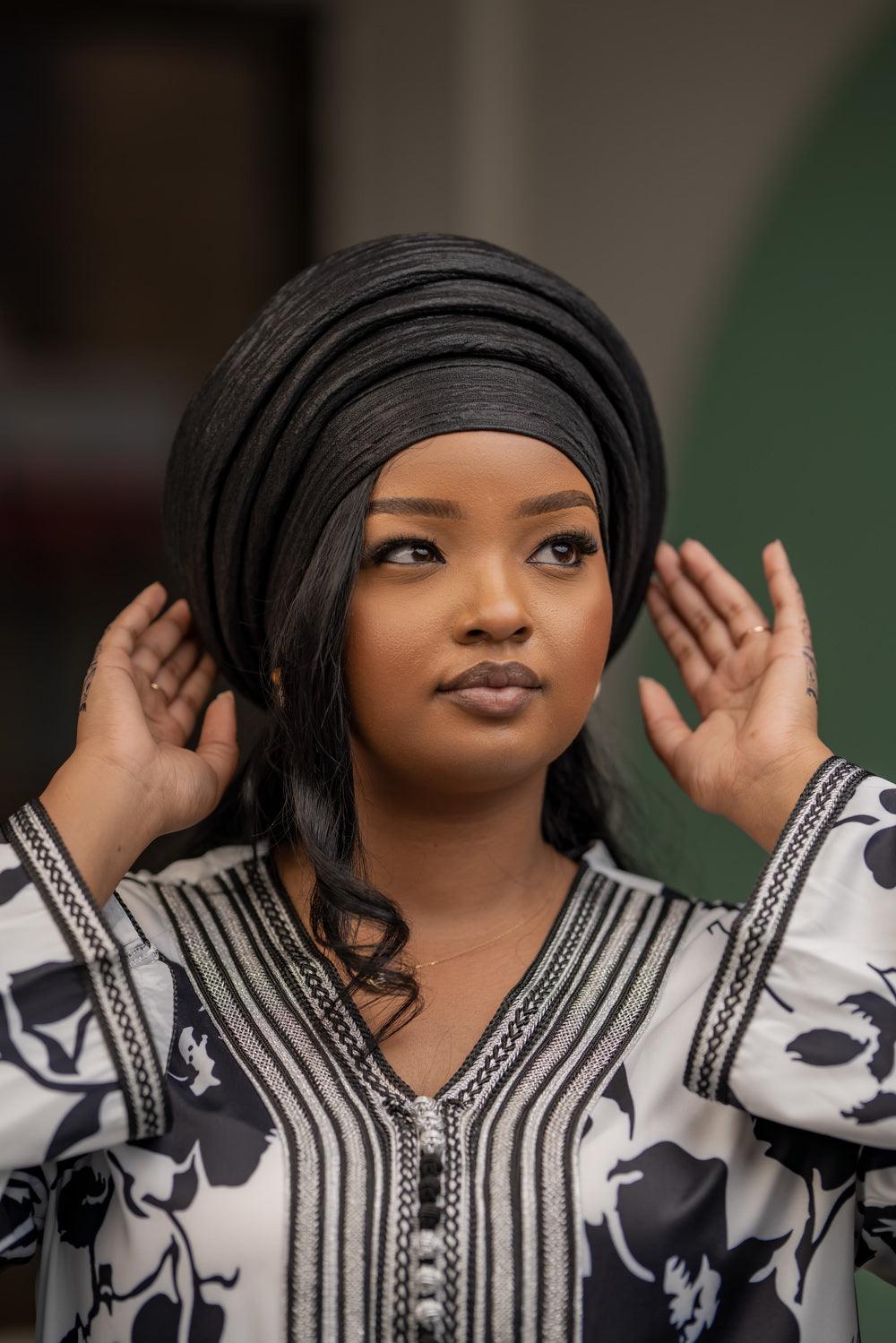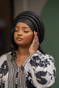 The Round Rich Wife Turban in Black from Nizar’s Line features a shiny finish and unique round shape for a standout, sophisticated look. Made from high-quality fabric, this pre-stitched turban offers effortless style and comfort. Shop turbans for sale in Kenya at Nizar’s Line today!