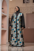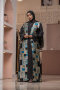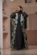 Crafted from a breathable cotton-polyester blend, this elegant abaya combines a classic black base with subtle blue and grey accents. Perfect for everyday wear or special occasions.