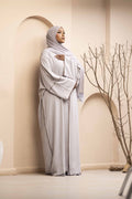 The Selma Grey Abaya from Nizar’s Line is crafted from high-quality cotton, offering breathability and comfort. Its versatile grey color makes it perfect for any occasion. Looking for Abayas for sale in Kenya? Visit us at Applewood Adams, G12, or shop online today!