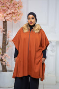 Introducing the Warm Girlie Puncho from Nizar's Line's Puncho Collection. This high-quality burnt orange puncho is designed for cold weather, featuring a furry neck detail for added comfort and style. Elevate your winter wardrobe with this cozy and elegant puncho, available for sale in Kenya at Nizar's Line.