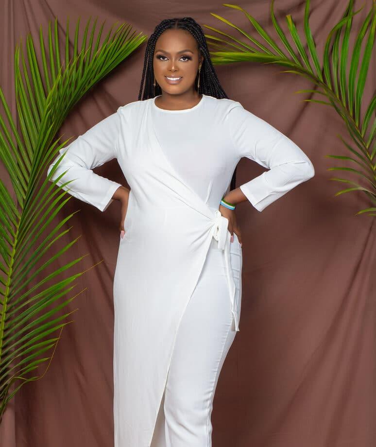 Elevate your style with our White Wrap-On Jumpsuit, a chic addition to Nizar's Line's Wrap-On Jumpsuit Collection. This elegant piece features a wrap-waisted design and a modest round neckline suitable for everyone. Its non-stretch, high-quality fabric ensures durability and comfort, and the cleverly concealed back zip adds a stunning touch. The long pants can be customized to your desired length. Whether you're petite or tall, this jumpsuit fits perfectly. Trust Nizar's Line for top-quality jumpsuits in Kenya. Order the White Wrap-On Jumpsuit today and experience the difference!