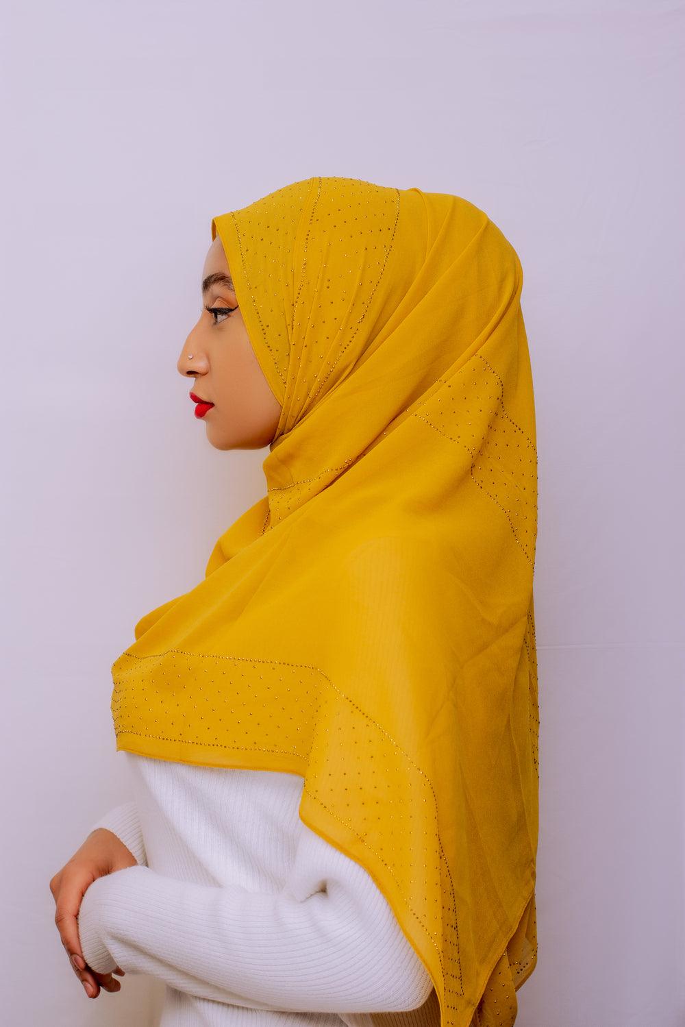 Yellow Gold-Stone Chiffon Hijab